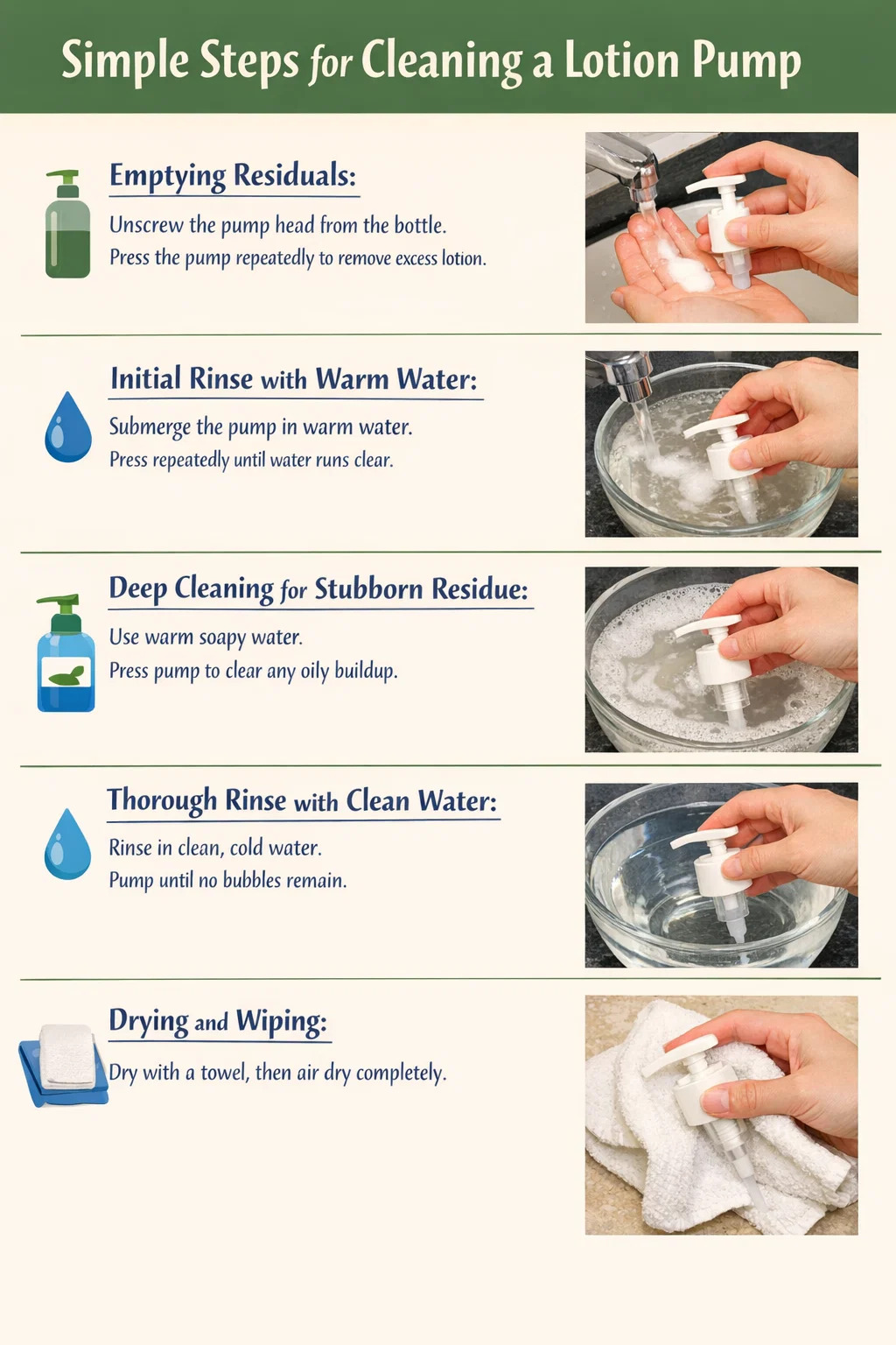 Ang paglilinis ng isang lotion pump ay talagang simple. Gamit ang tamang paraan, madali mong maalis ang natitirang produkto, tinitiyak ang kalinisan at maiwasan ang pagbara para magamit sa hinaharap.