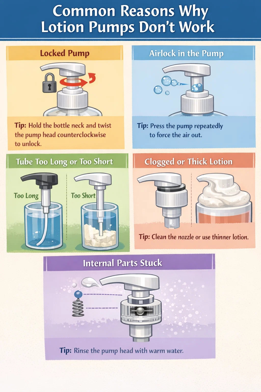 Medyo nakakadismaya kapag nahaharap ka sa paborito mong produkto ng skincare ngunit ayaw gumana ng lotion pump. Ang dahilan para sa isang hindi gumaganang bomba ay kadalasang nakatago sa ilang hindi kapansin-pansing mga detalye.